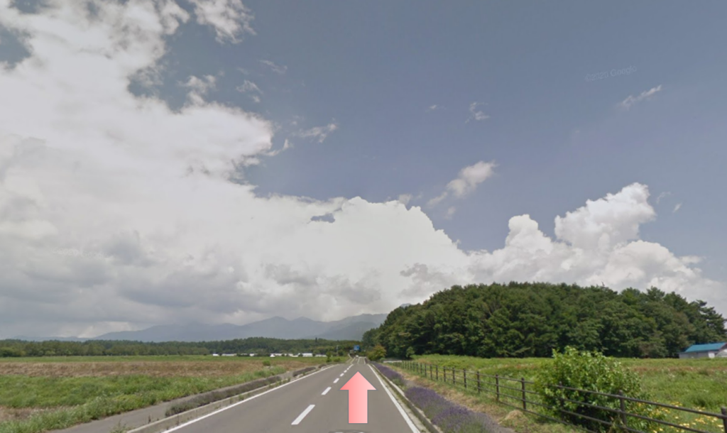 左手に白いお家が見えます。ここもずっと直進します。自然を堪能しながらドライブしてください。(段さがあったり、対向車が来る場合があるためスピードの出しすぎにはご注意ください)